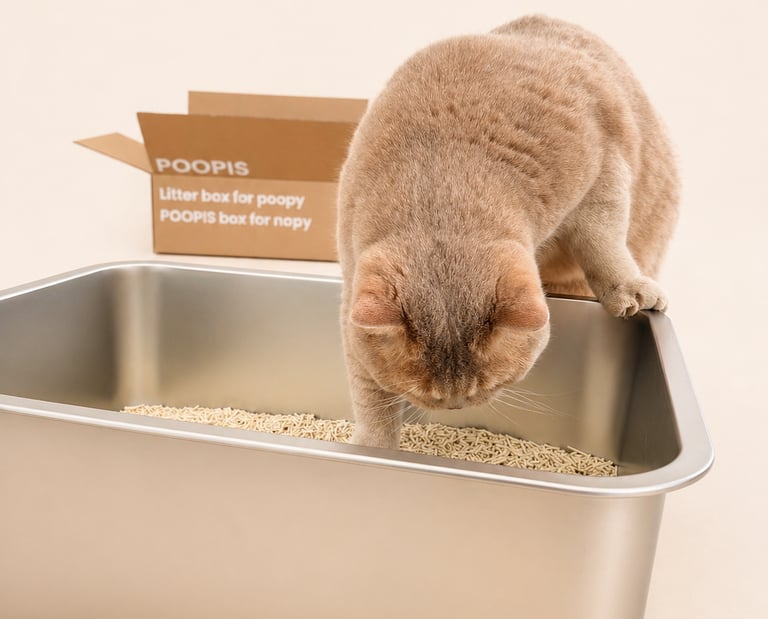Poopis was born from a love for animals. We had a unique need — a litter box that would stay clean and well-kept over time, look aesthetic, be more sustainable, and meet our cat’s needs. Having an older cat with arthritis, we also wanted to ensure her comfort — making it easy for her to step in and out of the box without difficulty. That’s how the idea for Poopis was born. A modern stainless steel litter box that is easy to clean, simple to maintain, durable, and stylish. Poopis is more than just a litter box. It is care designed to help cats feel comfortable and their humans feel happy.